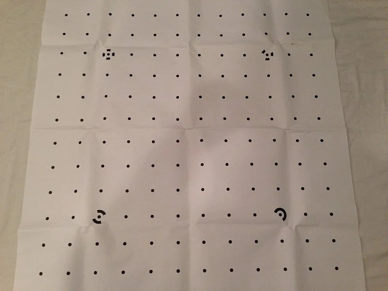 The first step was to calibrate the D3100 and iPhone with Photomodeler and iWitness. The Nikon D3100 calibrated without issue in both Photomodeler and iWitness, as expected. The iPhone was calibrated in Photomodeler using the 36 x 36 inch printed sheet, and there were no issues with the process. However, while the D3100 calibrated with a maximum error of 0.295 pixels, the iPhone max error was 2.475 pixels. Good, but not DSLR good. Photomodeler users can download the iPhone calibration here.
