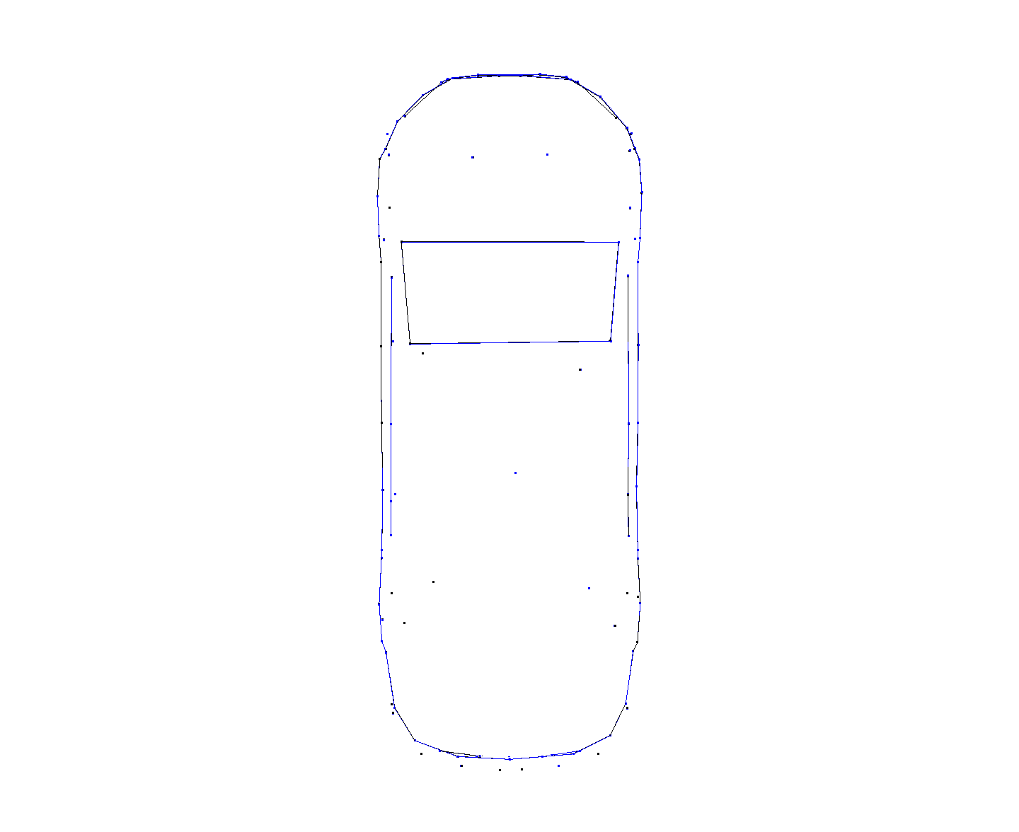In short, impressive. First, the results will be shown in graphical form, and then things will get a bit geeky as the accuracy is quantified. The models created in Photomodeler were merged and exported as a DXF while the iWitness models were exported as DXFs and then merged for comparison. In the animation below, the Photomodeler DSLR model is shown in black and the Photomodeler iPhone model is shown in blue. The maximum distance between any two corresponding points was 0.20 inches.