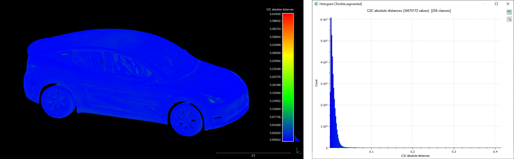 Cloud-to-cloud distance between Trimble and Leica.
