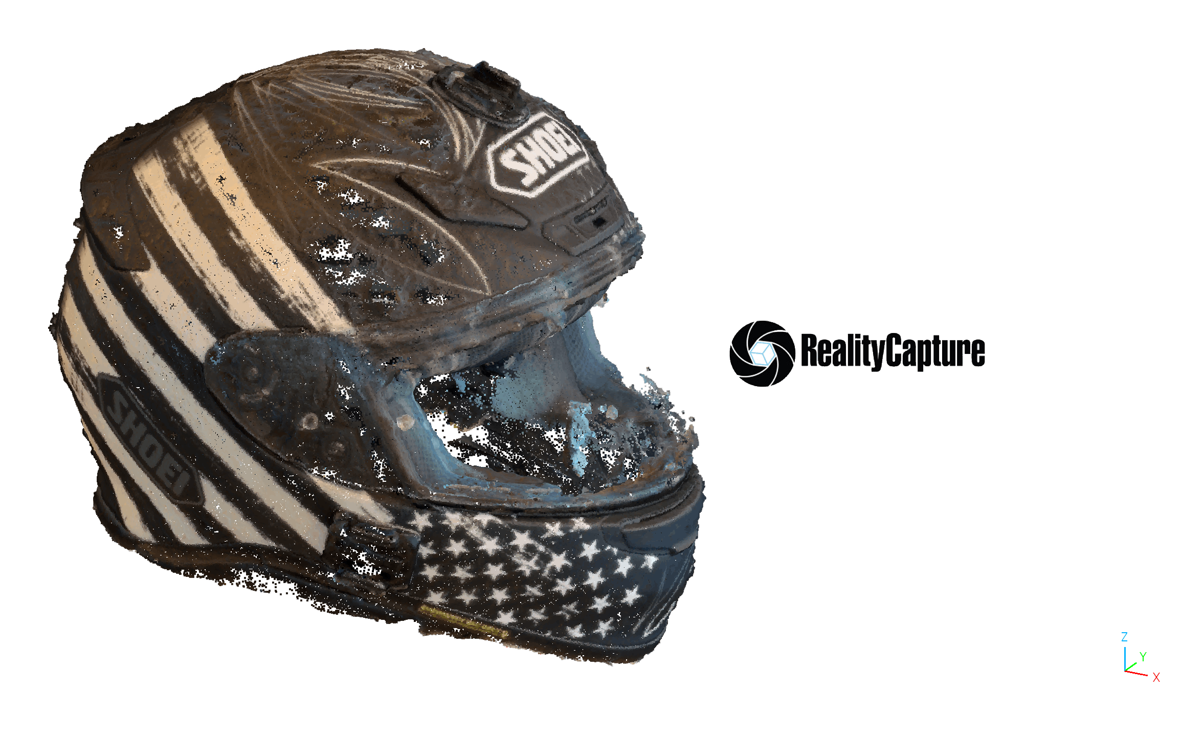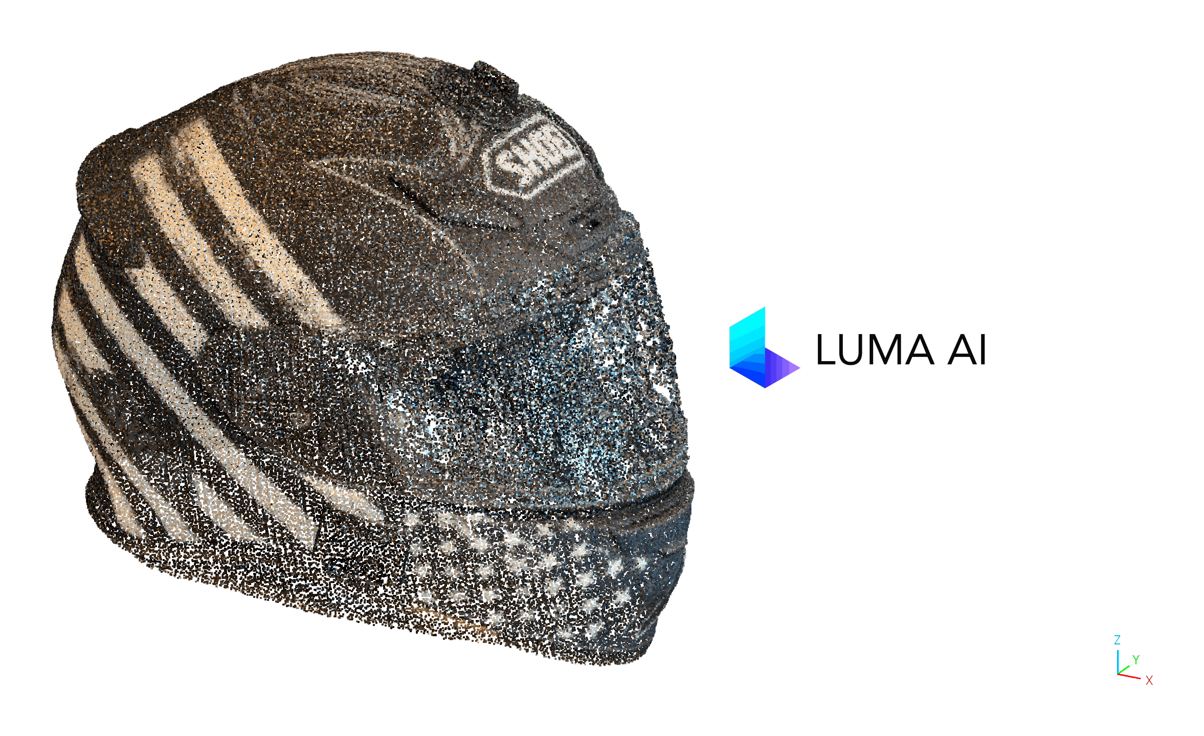 When exporting in those formats, I’m really just capitalizing on the implementation of the SfM algorithm and cloud processing, as the rendering benefits are only realized in the native viewer or in something like Unreal Engine, for now. The helmet point cloud below was created using a 50-second iPhone video and Luma. Notice that the face shield, which was clear, is well represented. That’s rare for a photogrammetric technique, and in processing the same video using RealityCapture (a more traditional photogrammetry tool), that data was missing.