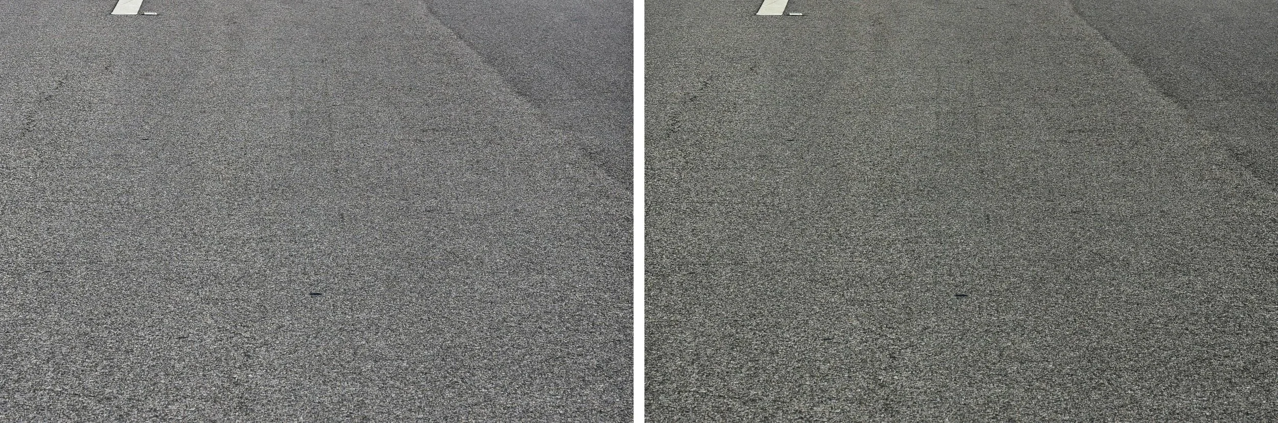 I went around town slamming the brakes of my Tundra yesterday to create some subtle tire marks to photograph with and without a polarizer. Interestingly, the polarizer only slightly increased visibility during these tests. See the images below (note: the tire mark may be too subtle to see here. Click here for the full-size image).
