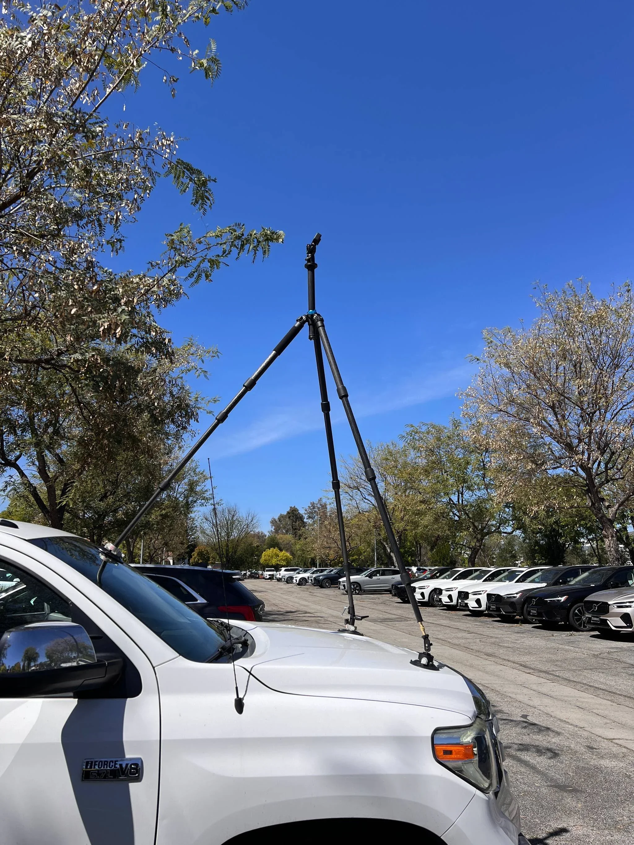 To accomplish the elevation, I threw a 7’ carbon fiber Benro on the hood of my Tundra using a few Wood’s suction cups. Ridiculous looking, and embarrassing, but effective.